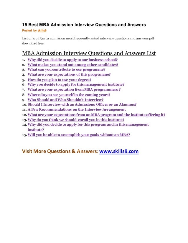 Good Questions To Ask of Interviewers/Recruiters: Can you tell me about the best MBA you have ever hired? What made them the best? 1. Do you have any outstanding questions regarding my qualifying education and experience and my ability to be a solid contributor to your organization? ... View Doc